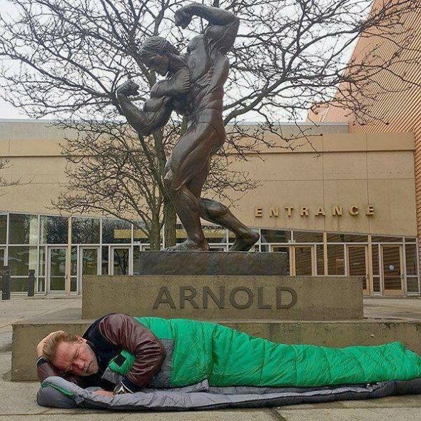 Γιατί είναι άστεγος ο Άρνολντ Σβαρτζενέγκερ; Πολύ απλά επειδή ένα ξενοδοχείο στην Καλιφόρνια που επέλεξε στην είσοδό του να τοποθετήσει ένα άγαλμα του γνωστού μποντιμπιλντερά/ηθοποιού/πολιτικού, είχε ειδοποιήσει τον Σβερτζενέγκερ – όταν ήταν κυβερνήτης της πολιτείας – πως μπορεί να διαμένει στο ξενοδοχείο δωρεάν.
