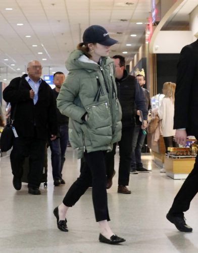 Η προσφάτως αρραβωνιασμένη Έμμα Στόουν κατέφτασε με συνοδεία στο αεροδρόμιο Ελ. Βενιζέλος, όπου την περίμεναν άνθρωποι για να τη μεταφέρουν στο ξενοδοχείο στο Σύνταγμα όπου διαμένει και θα περάσει μερικές ακόμα ημέρες, μέχρι να τελειώσουν τα γυρίσματα.
