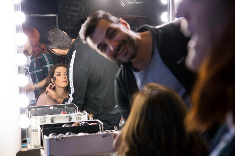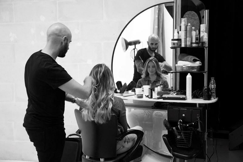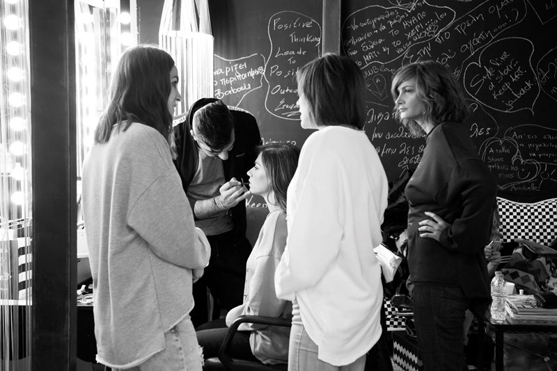 Ο hair stylist Γιάννης Μιχαλέλης ήθελε να είναι όλες οι γυναίκες στο στούντιο περιποιημένες οπότε μετά την επιμέλεια των μαλλιών των πρωταγωνιστριών μάς «κυνηγούσε» με μια βούρτσα και ένα πιστολάκι για να ανανεώσει την εμφάνιση μας.