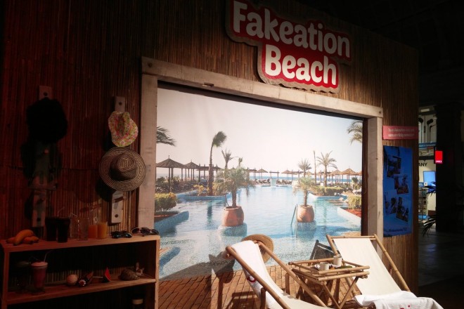 Μέσα στα καταστήματα της TUI βρίσκεται εγκατεστημένος ένας προσωπικός θάλαμο-προορισμός, στον οποίο ο εκάστοτε επισκέπτης μπορεί μόνος του, ή με παρέα, να βιώσει την εμπειρία χαλάρωσης σε μια παραλία. Η Fakeation Beach, όπως ονομάζεται, είναι στην ουσία μια αμμουδιά που παραπέμπει σε Μεσογειακούς προορισμούς το καλοκαίρι.