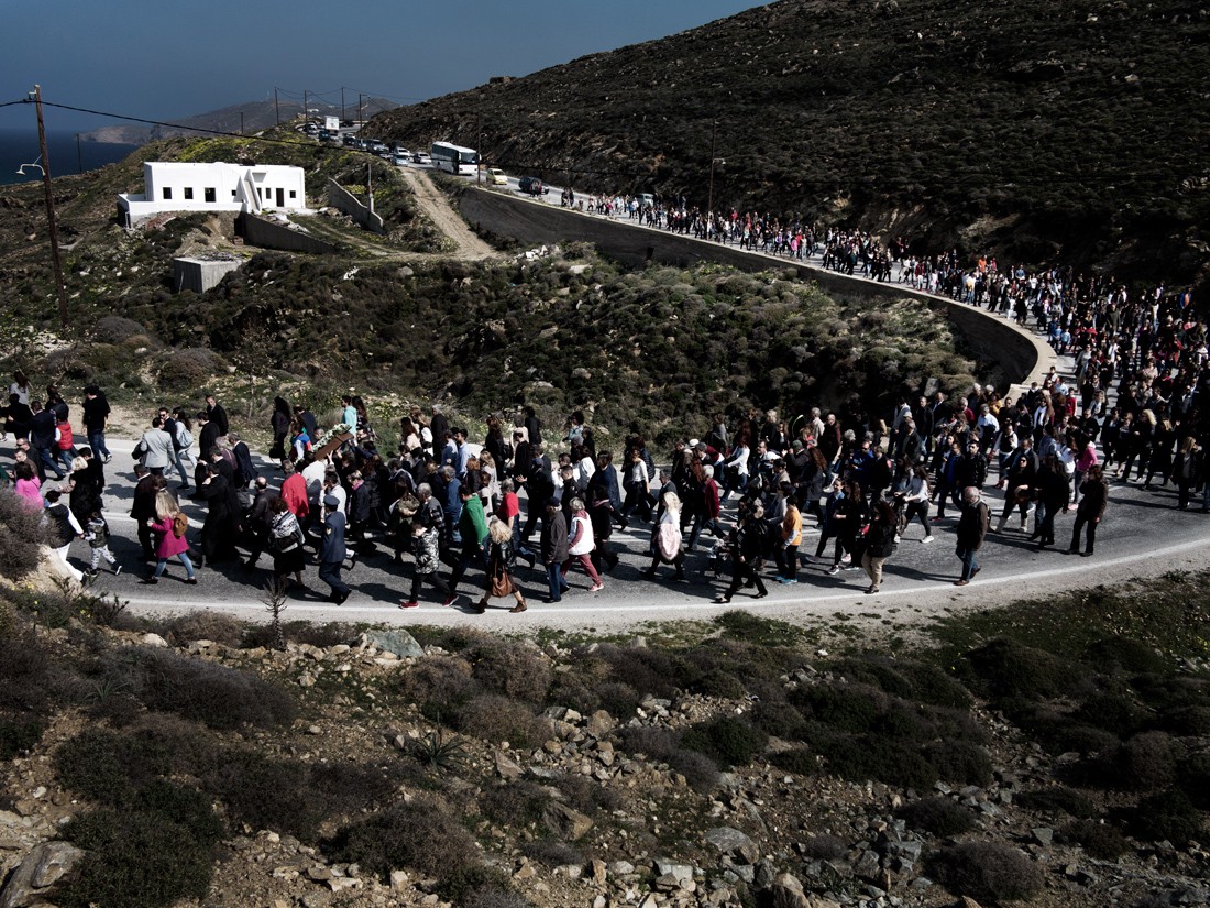 «Στην έκθεση όμως συμμετείχε και η Δήλος. Ένα μέρος με παγκόσμια εμβέλεια. Ένας βαρυσήμαντος αρχαιολογικός χώρος. Πολλοί έρχονται στη Μύκονο και δεν επισκέπτονται τη Δήλο. Δεν τη γνωρίζουν. Είναι σαν να πηγαίνουν στην Αθήνα και να μην επισκέπτονται την Ακρόπολη. Όπως στη Μύκονο, έτσι και στη Δήλο αποτύπωσα τους ανθρώπους. Τους φύλακες, τους καθαριστές, τους αρχαιολόγους. Τους συντηρητές. Μάλιστα πέρσι φωτογράφησα τις ανασκαφές της αρχαιολογικής σχολής στο νησί, την περίοδο που έτυχε να βρίσκονται εκεί οι αρχαιολόγοι. Έχει κι αυτή την καθημερινότητά της και ας μην μένουν μόνιμοι κάτοικοι εκεί. Την επισκεπτόμαστε, βλέπουμε κάτι και δεν ξέρουμε ποιος το συντηρεί, ποιος φροντίζει ώστε να συνεχίσει να υπάρχει μέσα στο χρόνο».