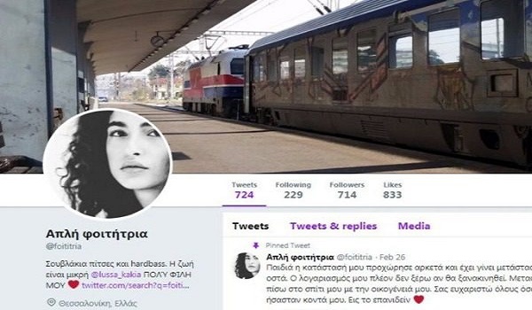 Εφυγε από τη ζωή σήμερα, σε ηλικία 22 ετών, η Ελισάβετ Αντωνιάδη, που έγινε γνωστή στο Twitter ως «Απλή Φοιτήτρια».
