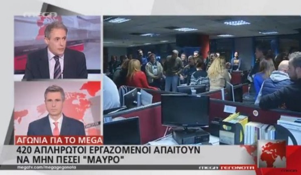 Ακόμη ένα δελτίο ειδήσεων του Mega βγήκε στον αέρα με τους 420 εργαζόμενους του τηλεοπτικού σταθμού να απαιτούν να μην πέσει «μαύρο» στο κανάλι.