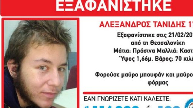 Το πτώμα του Αλέξανδρου Τανίδη 17 χρόνων, εντοπίστηκε εννέα μέρες μετά την εξαφάνιση του από υπάλληλο του Νοσοκομείου Παπανικολάου. Βρισκόταν  ανάμεσα σε ψηλά χόρτα σε  δύο μέτρα απόσταση από την εσωτερική περίφραξη του προαύλιου χώρου.