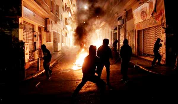 Ομάδες ατόμων που φορούν κουκούλες και κράνη, συνεχίζουν να πετούν βόμβες μολότοφ, πέτρες και φωτοβολίδες στις οδούς Στουρνάρη, Μπουμπουλίνας, Τοσίτσα, Τζόρτζ και Καλλιδρομίου, με τις αστυνομικές δυνάμεις να προσπαθούν να τους απωθήσουν, κάνοντας χρήση χημικών.