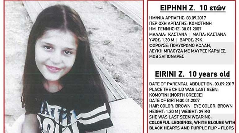 Σύμφωνα με την οργάνωση, στις 3 Σεπτεμβρίου 2017 και ώρα 18.00, απομακρύνθηκε η Ειρήνη Ζ., 10 ετών από τον πατέρα της, ο οποίος δεν ασκεί την επιμέλειά της, από την Κομοτηνή,