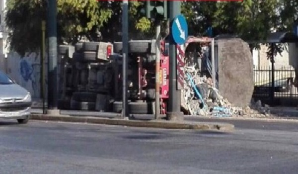 Όπως φαίνεται από την φωτογραφία, το φορτηγό τούμπαρε στη δεξιά λωρίδα της Πέτρου Ράλλη.