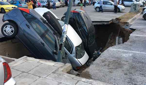 Οι οδηγοί, πάντως, που διαπίστωσαν ότι τα οχήματά τους τα έχει «καταπιεί» το έδαφος αναζητούν να μάθουν πώς θα αποζημιωθούν,