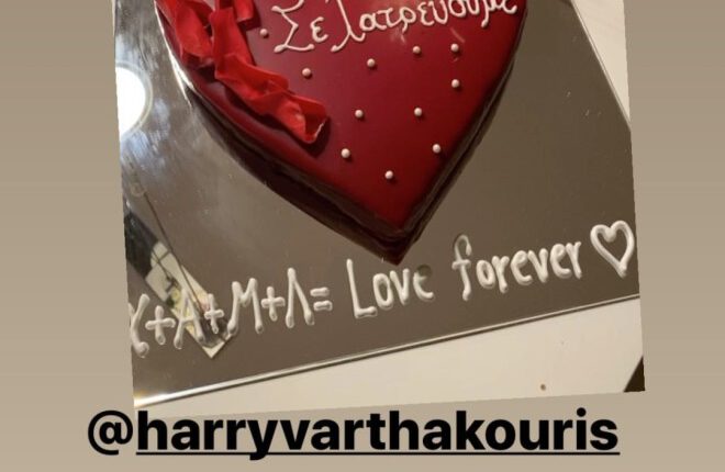 Η παρουσιάστρια, που ετοιμάζεται να ξεκινήσει εκπομπή στον Alpha, δημοσίευσε ένα στόρι στο Instagram που απεικονίζει την τούρτα που ετοίμασε για τον σύζυγό της κι η οποία έγραφε : «Χρόνια πολλά έρωτά μας, σε λατρεύουμε»– ενώ είχε προσθέσει τα αρχικά όλης της οικογένειας, τα δικά τους και των δυο κοριστιών τους.
