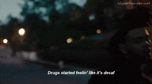 Εκείνη την περίοδο πίστευε πως μόνο κάνοντας ναρκωτικά είναι ο εαυτός του. «Όταν δεν είχα τίποτα να κάνω εκτός από μουσική, ήταν αρκετά βαριά. Τα ναρκωτικά ήταν το στήριγμά μου. Υπάρχουν τραγούδια στον πρώτο μου δίσκο, που κρατάνε 7 λεπτά και λέω ασυναρτησίες. Ό,τι σκέψη μου ερχόταν στο μυαλό την ώρα που ήμουν υπό επήρεια. Δεν μπορώ να το κάνω πλέον αυτό», εξηγεί.