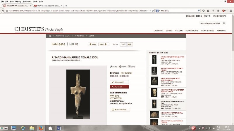Θα σας αναφέρω δύο διαφορετικές περιπτώσεις: Το Δεκέμβριο του 2015 υπήρχε ένα χάλκινο ειδώλιο που, όπως όλα έδειχναν, είχε προέλθει από το Ισραήλ και προοριζόταν να δημοπρατηθεί από τους Christie’s της Νέα Υόρκης. Ενημέρωσα τις αμερικανικές αρχές και την ισραηλινή πρεσβεία στη Νέα Υόρκη αλλά δεν έλαβα απάντηση. Δημοσιοποίησα στα ΜΜΕ τα αποτελέσματα της έρευνάς μου, ούτε τότε υπήρχε αντίδραση. Παράλληλα, οι Christie’s επέμεναν στην πώλησή του και δεν το απέσυραν. Τελικά η δημοπρασία πραγματοποιήθηκε αλλά το ειδώλιο δεν πουλήθηκε. Η δημοσιότητα της υπόθεσης δούλεψε αποτρεπτικά για την πώλησή του, γιατί οι επίδοξοι αγοραστές κατάλαβαν ότι κάτι δεν πήγαινε καλά…