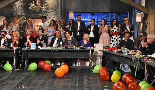 Το μικρόφωνο παίρνουν όμως και οι ηθοποιοί Ματθίλδη Μαγγίρα, Θωμαΐς Ανδρούτσου, Κώστας Ευρυπιώτης, Γιάννης Χατζηγεωργίου, Άρης Πλασκασωβίτης και o παρουσιαστής Ευτύχης Μπλέτσας μέσα σε μια ατμόσφαιρα γεμάτη με σερμπαντίνες και απίστευτες μελωδίες.