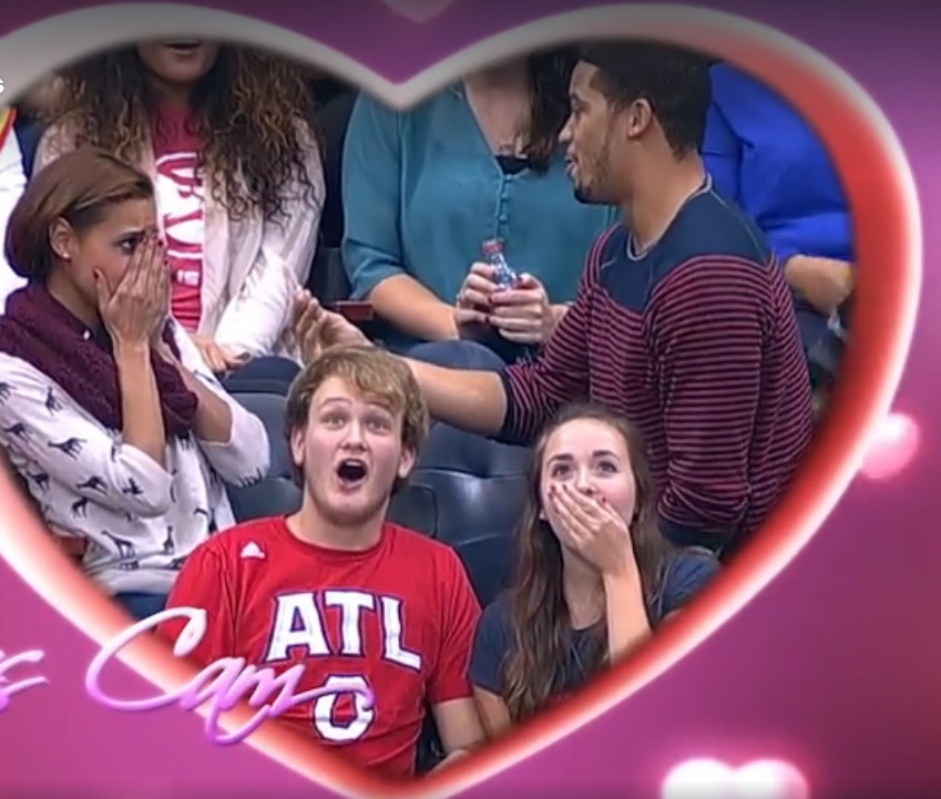 Αυτή την φορά, κατά τη διάρκεια ενός time out η κάμερα του σταδίου έκανε πλάνα στους φιλάθλους του αγώνα των Atlanta Hawks. Μέχρι που σταμάτησε σε ένα ζευγάρι, το οποίο αντάλλαξε ένα γλυκό φιλί! Ωστόσο δεν σταμάτησαν εκεί, καθώς ο νεαρός γονάτισε και έβγαλε ένα δαχτυλίδι, κάνοντας πρόταση γάμου στην αγαπημένη του.