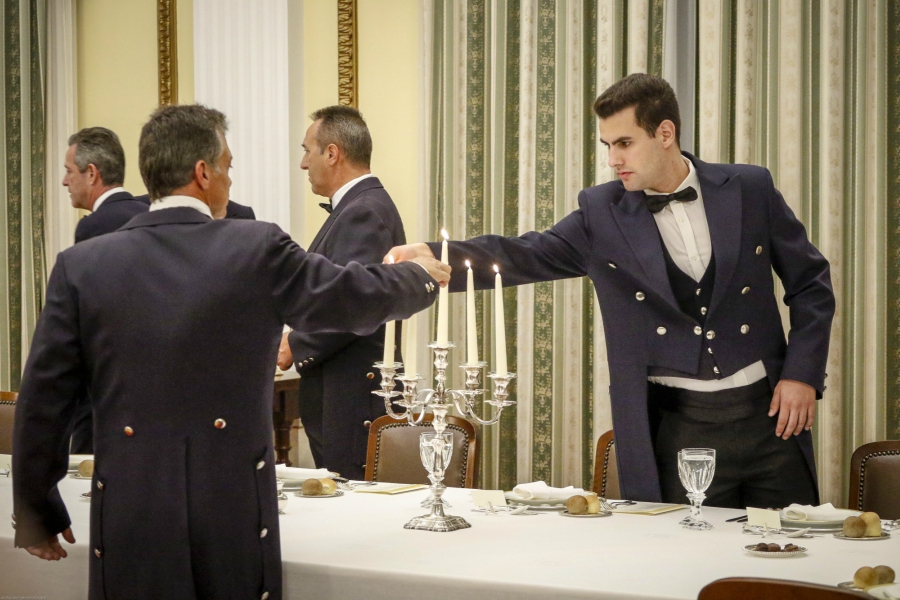 Το επίσημο δείπνο περιλαμβάνει γαρίδες με εσπεριδοειδή, χόρτα με σελινόριζα ,φιλέτο σφυρίδα γαρνιρισμένο με λαχανικά ατμού, φρούτα εποχής και καφέ.