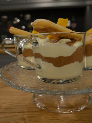 Αφράτη δίχρωμη μους σοκολάτα-πορτοκάλι