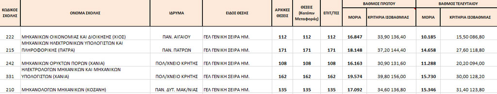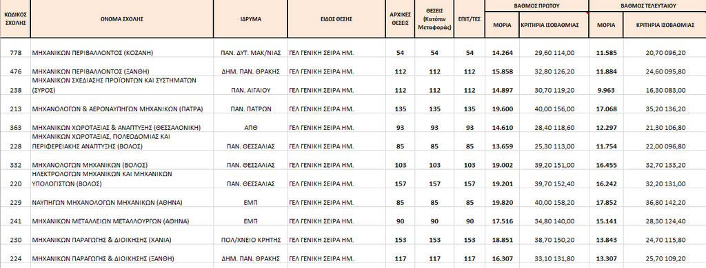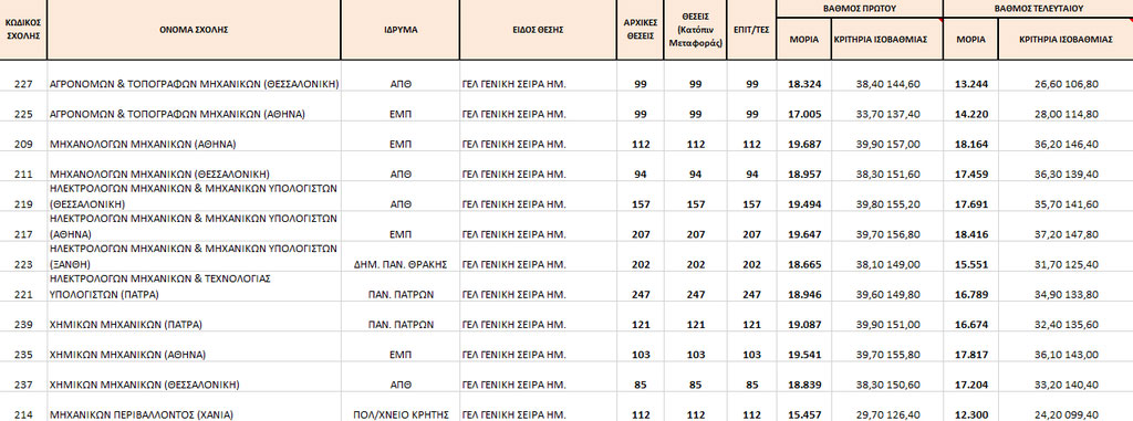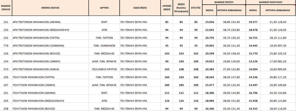 Κατακόρυφη πτώση παρουσίασαν οι βάσεις στις Πολυτεχνικές Σχολές, σε σχέση με πέρυσι.