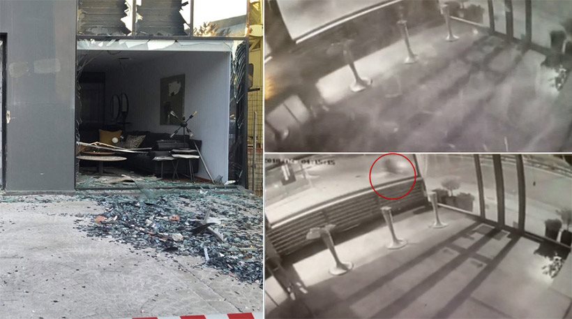 Στο βίντεο φαίνεται, μάλιστα, λίγο πριν την έκρηξη να φτάνει έξω από το κατάστημα μια μοτοσικλέτα με δύο αναβάτες.