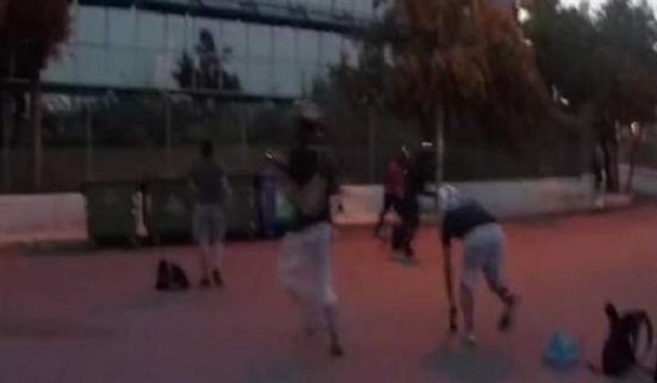 Σε αυτό εμφανίζονται έξι μέλη, φορώντας κράνη, να ρίχνουν μπογιές στην πρόσοψη του κτιρίου.