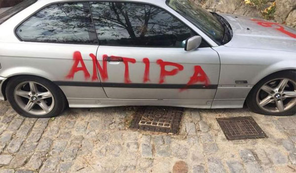 Σύμφωνα με την καταγραφή των αστυνομικών αρχών της Ξάνθης, οι δράστες τρύπησαν τα λάστιχα του αυτοκινήτου του καθηγητή που ήταν παρκαρισμένο κοντά στο σπίτι του, ενώ με κόκκινη μπογιά έγραψαν τη λέξη ΑΝΤΙFA και ζωγράφισαν σφυροδρέπανα.