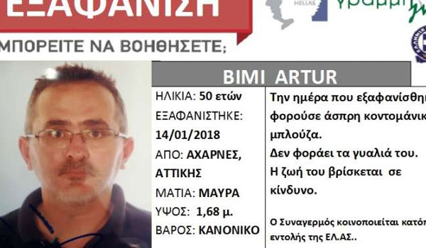 Δεν είχε αίσιο τέλος η περιπέτεια του Artur Bimi που είχε χαθεί την 14/01/2018.