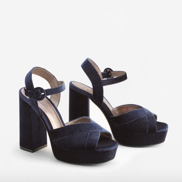Πρόκειται για ένα ζευγάρι με την υπογραφή των Mango, που είναι φτιαγμένα από μπλε βελούδο. Το χοντρό τακούνι σε συνδυασμό με τη φιάπα, τα κάνουν πολύ άνετα, πράγμα που σημαίνει ότι μπορείτε να τα φορέσετε για πολλές ώρες, να χορέψετε, να σταθείτε όρθια και να μην ταλαιπωρήσετε τα πόδια σας, ενώ μπορείτε να τα συνδυάσετε με βραδινά αλλά και ελαφρώς πιο casual σύνολα. Μπορείτε για παράδειγμα να τα φορέσετε με ένα μεταλλιζέ φόρεμα αλλά και με ένα ζευγάρι ασημί καλτσάκια και τζιν φούστα, θα είναι εξίσου στιλάτα.