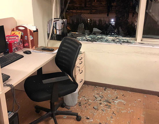 Η έκρηξη του αυτοσχέδιου μηχανισμού, η οποία χαρακτηρίζεται «ισχυρή», προκάλεσε ζημιές στον πρώτο και στον δεύτερο όροφο — κυρίως σπασμένα τζάμια — πάντως δεν υπήρξε κανένας τραυματισμός.
