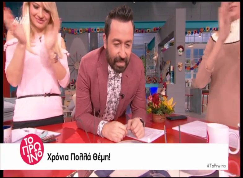 Η παρέα του Πρω1νό δεν ξέχασε τον παρουσιαστή και, μετά τα πρώτα θέματα της εκπομπής, φρόντισε να του ευχηθεί, ενώ προβήθηκε βίντεο με δηλώσεις προσώπων της showbiz που τον γνωρίζουν και απαντούσαν στην ερώτηση «πόσο χρονών είναι ο Θέμης;».