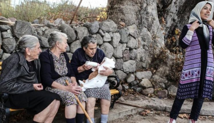 H φωτογραφία τους έγινε αμέσως viral: Τρεις γιαγιάδες σε ένα ψαροχώρι της Λέσβου παραδίδουν μαθήματα ζωής. Έχουν στην αγκαλιά τους ένα βρέφος. Του δίνουν γάλα με ένα μπιμπερό για να σταματήσει να κλαίει από την πείνα. Το φροντίζουν σαν να είναι το δικό τους εγγόνι. Αδιαφορούν για τον φωτογραφικό φακό του Λευτέρη Παρτσάλη που τις αποτυπώνει και γίνονται οι διάσημες γιαγιάδες που κάθονται στο παγκάκι του χωριού Σκάλα Συκαμιάς και αυτές που λίγο έλειψε να πάρουν το Νόμπελ Ειρήνης.