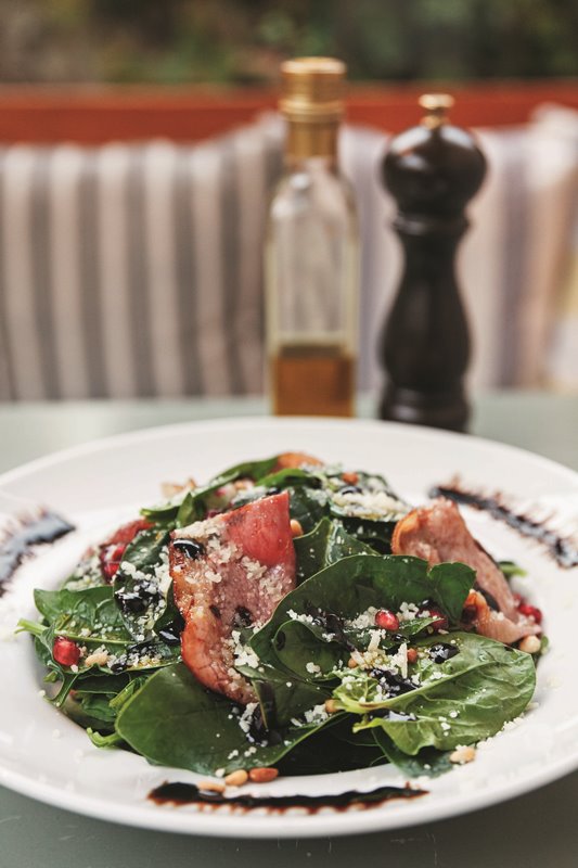 • Σαλάτα σπανάκι με μπέικον, κουκουνάρι & ρόδι (4 μερίδες)