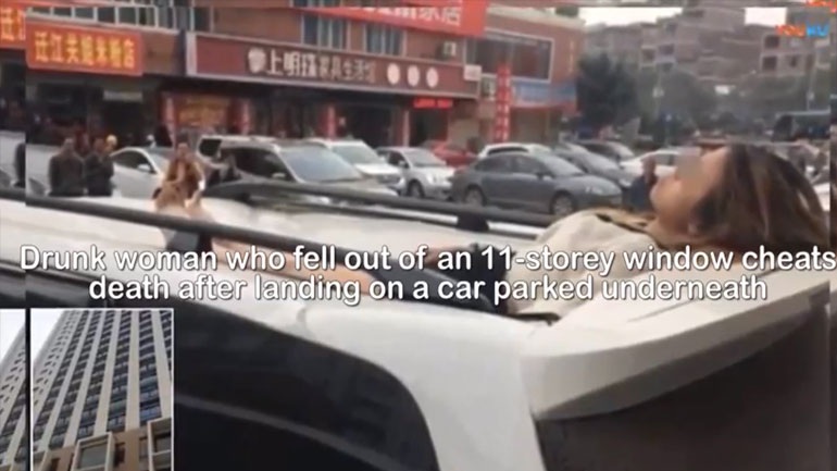 Στο βίντεο φαίνεται η στιγμή που οι πυροσβέστες απομακρύνουν τη γυναίκα αφού έχει πέσει πάνω στο αυτοκίνητο στην επαρχία Γκουανξί, στη νοτιοδυτική Κίνα.
