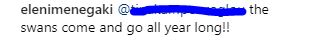 Τότε, η Ελένη, η οποία στηρίζει τον σύζυγο της, έσπευσε να απαντήσει μέσω του δικού της προφίλ, πως οι χήνες φεύγουν και επιστρέφουν καθ’ όλη τη διάρκεια του χρόνου. Βέβαια, αξίζει να αναφέρουμε πως η συνομιλία αυτή, έγινε στα… αγγλικά!