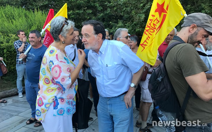 Διαμαρτυρία με αφορμή την επίσκεψη του Γάλλου προέδρου, Εμανουέλ Μακρόν, στην Ελλάδα πραγματοποιεί στους στύλους του Ολυμπίου Διός η ΛΑΕ. Μεταξύ των παρευρισκόμενων είναι ο πρόεδρος του κόμματος, Παναγιώτης Λαφαζάνης, αλλά και ο Δημήτρης Στρατούλης.