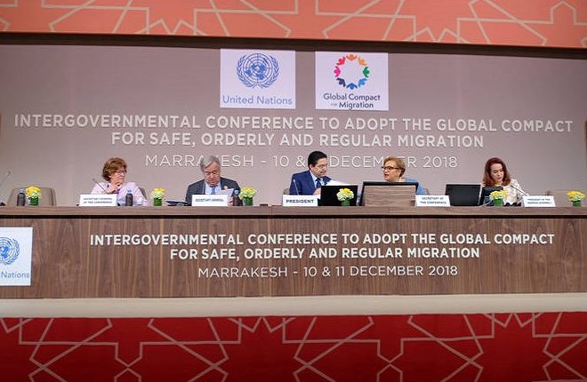 Το παγκόσμιο σύμφωνο του ΟΗΕ για τη μετανάστευση εγκρίθηκε επισήμως σήμερα στο Μαρακές του Μαρόκου ενώπιον μιας διακυβερνητικής διάσκεψης περίπου 150 χωρών, αν και το ενέκριναν λιγότερες κυβερνήσεις απ’ όσες είχαν προηγουμένως εργασθεί για την πρόταση.