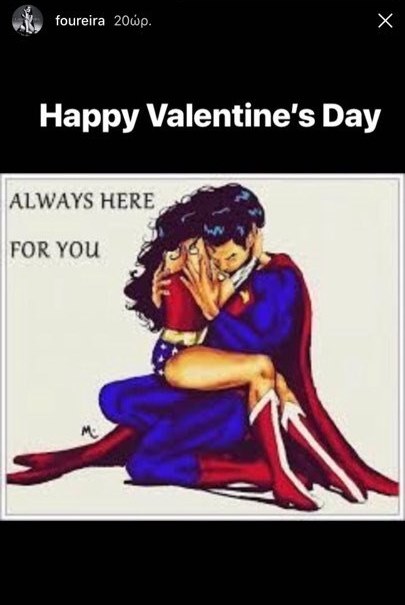 Με αφορμή την γιορτή των ερωτευμένων, η Ελένη «ανέβασε» ένα μήνυμα για τον αγαπημένο της στα stories του Intagram και, συγκεκριμένα, ένα σκίτσο που απεικονίζει δύο σούπερ ήρωες υπό την λεζάντα «πάντα εδώ για σένα»!