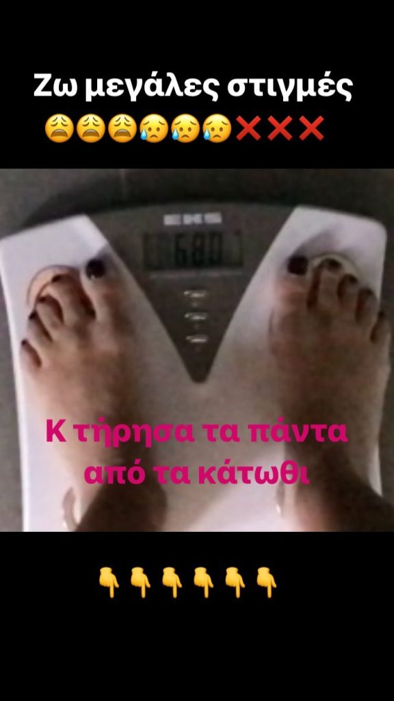 Παρόλα αυτά η Ελεονώρα έχει πάρει μερικά παραπανίσια κιλά γεγονός που συνειδητοποίησε σήμερα το πρωί που ανέβηκε στη ζυγαριά. Η παρουσιάστρια ανήρτησε σε Instastories την εν λόγω φωτογραφία γράφοντας «Ζω μεγάλες στιγμές» με στεναχωρημένες φατσούλες ενώ διευκρίνισε πως τήρησε όλα όσα έπρεπε. Τι νούμερο γράφει η ζυγαριά;