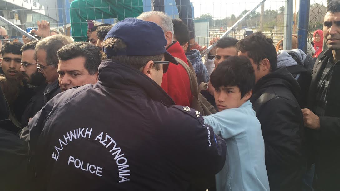 Οι πρόσφυγες αντέδρασαν στην παρουσία του υπουργού και τα πνεύματα οξύνθηκαν, με αστυνομικό να ανταλλάσσει γροθιές με μικρό πρόσφυγα μπροστά στις κάμερες και παρουσία του υπουργού.