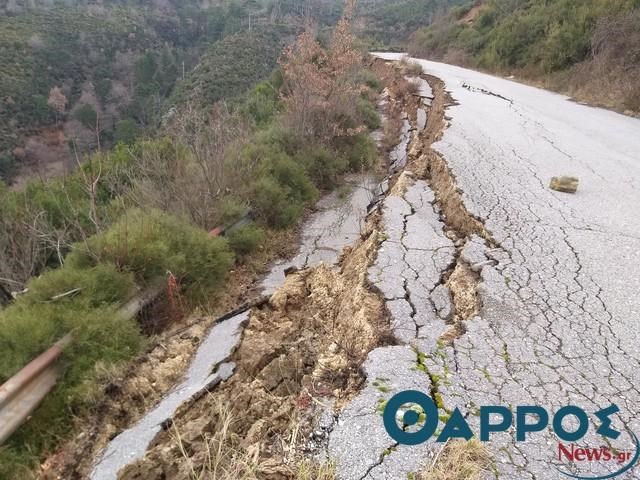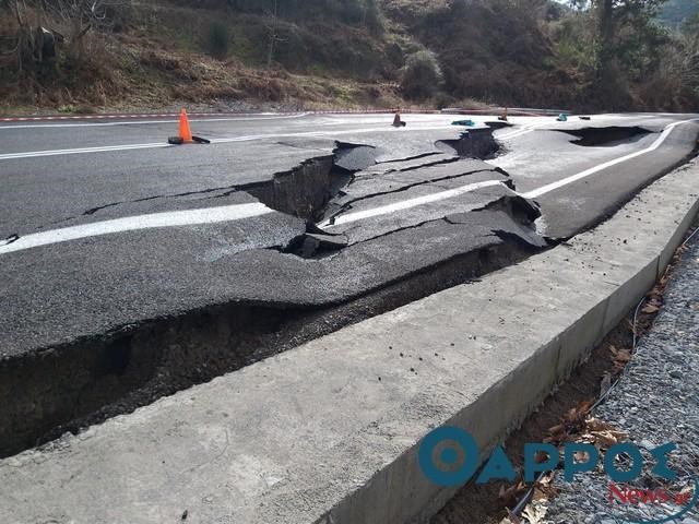 Μεγάλη καθίζηση έχει υποστεί το οδόστρωμα στην Εθνική Οδό Καλαμάτας-Σπάρτης με τις ζημιές που καταγράφονται να είναι ανυπολόγιστες.