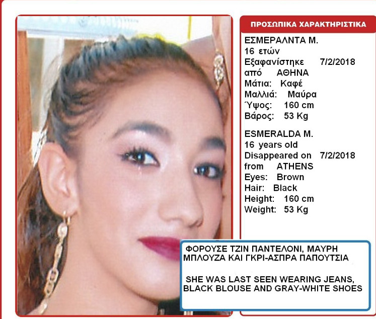 Η 16χρονη ονομάζεται Εσμεράλντα Μ, και χάθηκε την Τετάρτη (07.02.2018) από το σπίτι της στις 19:00, κάτι που κάνει την υπόθεση ακόμα πιο περίεργη.