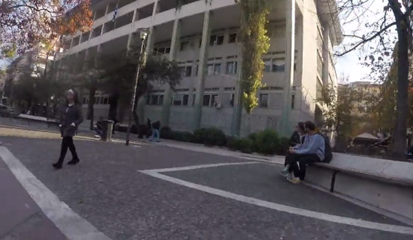 Τα μέλη της αναρχικής έφτασαν στα δικαστήρια της Λάρισας από την πλευρά της Κεντρικής Πλατείας και πέταξαν μπογιές και στη συνέχεια απομακρύνθηκαν τρέχοντας.