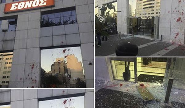 Επίθεση στα γραφεία του Έθνους. Τα έκαναν γυαλιά καρφιά