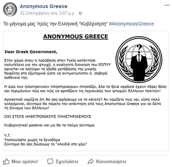 Αναλυτικά το μήνυμα των Anonymous Greece
