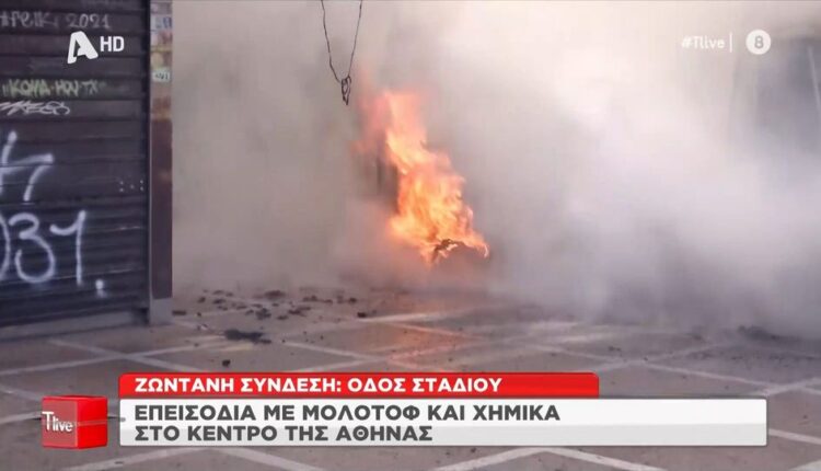 Κουκουλοφόροι ανέβηκαν την οδό Σταδίου, εκεί έσπασαν το μνημείο των θυμάτων της Μαρφίν και συνέχισαν προς το Σύνταγμα, όπου βρίσκεται ο κυρίως όγκος των διαδηλωτών για τη σιδηροδρομική τραγωδία στα Τέμπη.