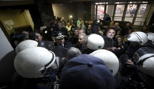 Ομάδα 60 ατόμων εισέβαλε στο κτίριο του υπουργείου και υπήρξαν εντάσεις με τους αστυνομικούς.