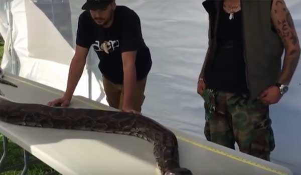 Έναν τεράστιο πύθωνα Βιρμανίας, πέντε μέτρων και βάρους παραπάνω από 60 κιλά, έπιασαν στη Φλόριντα.