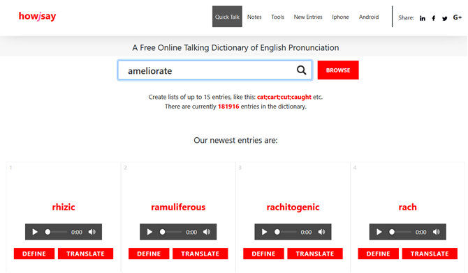 Το καλό με το Howjsay είναι ότι κάθε λέξη από τη βάση δεδομένων του είναι ξεχωριστά προ-καταγραμμένη και δεν χρησιμοποιείται συνθετική ομιλία. Με άλλα λόγια ακούτε μία αληθινή φωνή. Το Howjsay υποστηρίζει τόσο αμερικανικές όσο και βρετανικές προφορές.