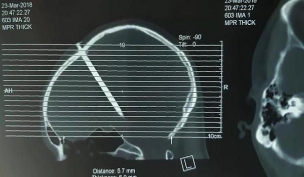 Είχε καρφωμένο στο κρανίο του ένα καρφί 8 εκατοστών. Εξείχε μόνο η κεφαλή του καρδιού και όλο το υπόλοιπο βρισκόταν μέσα στο κεφάλι του. Ο ίδιος δεν θυμόταν πως το έπαθε. Απλά ζαλιζόταν λίγο και για αυτό πήγε στο νοσοκομείο.