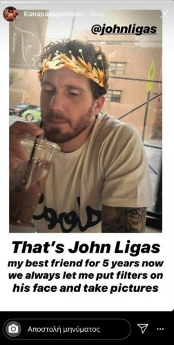 «Αυτός είναι ο John Ligas, ο καλύτερος μου φίλος εδώ και πέντε χρόνια. Πάντα με αφήνει να βάζω φίλτρα στο πρόσωπο του και να βγάζω αστείες φωτογραφίες. Είναι ο προπονητής μου, ο παρτενέρ μου στο χορό και το φιλαράκι μου στα μπραντς. Αγαπάει τα παγωτά, τα λουλούδια, τα πάρτι με εσώρουχα, τα βίντεο, τα boomerang και τον καφέ. Αγαπάει τις βόλτες με το ποδήλατο και φοβάται το τρενάκι του τρόμου», έγραψε χαρακτηριστικά και με μία σειρά από stories αφηγήθηκε τόσο την ιστορία της φιλίας τους όσο και την δική του μάχη με τον καρκίνο.