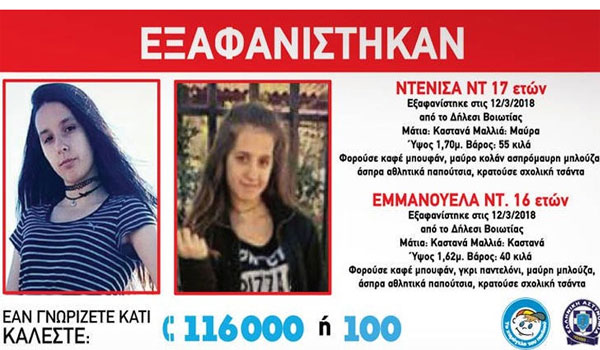 Οι δύο αδελφές, 17 και 16 ετών εξαφανίστηκαν χωρίς τα κινητά τους τηλέφωνα, ενώ όπως είπε η μητέρα τους δεν έχουν μπει και στους λογαριασμούς τους στο Facebook, κάτι που την έχει ανησυχήσει πολύ.