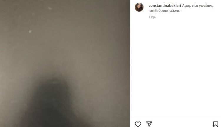 Την ίδια ώρα, η πρώην σύζυγος του Βασίλη Μπισμπίκη, Κωνσταντίνα Μπεκιάρη, προχώρησε σε μια αινιγματική ανάρτηση που δεν είναι σαφές εάν εγκρίνει τη συμπεριφορά του ζευγαριού.