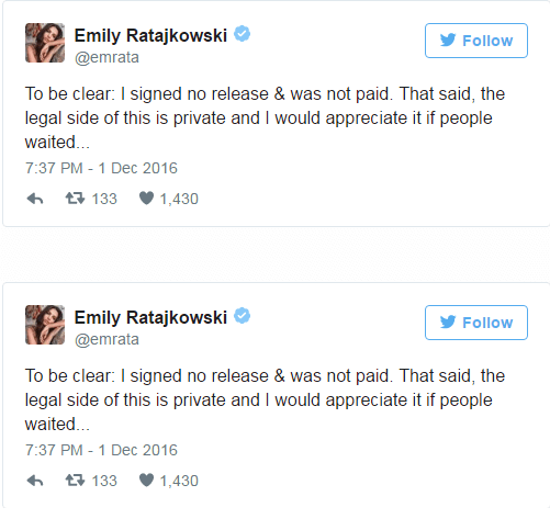 «Αυτές οι φωτογραφίες που χρησιμοποιούνται χωρίς την άδειά μου είναι ένα ακόμη παράδειγμα σε όλα όσα αντιστέκομαι σθεναρά και δικαιολογούν αυτό που πρεσβεύω: οι γυναίκες έχουμε το δικαίωμα να επιλέγουμε πότε και πως θέλουμε να μοιραστούμε τη σεξουαλικότητα και τα σώματα μας» συνεχίζει.
